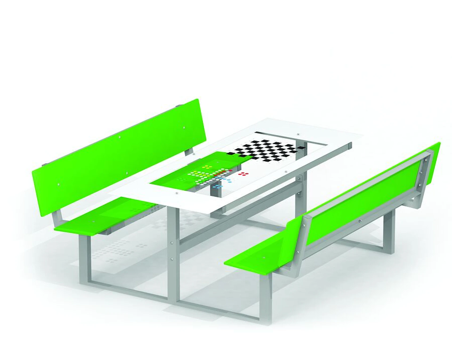 Bænkebord i HPL med skak og ludo i bordpladen
