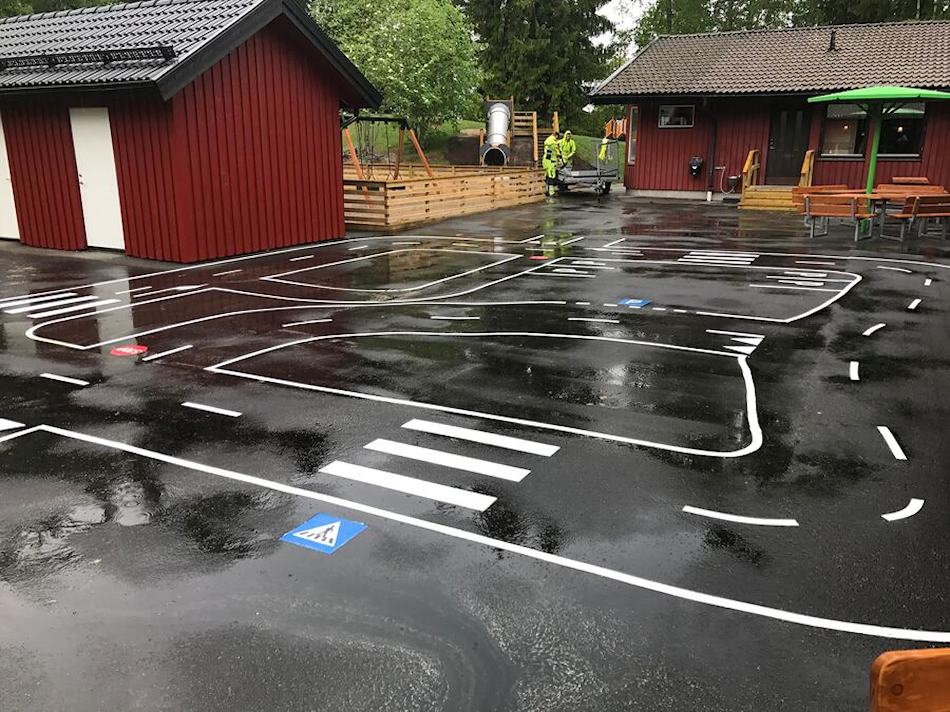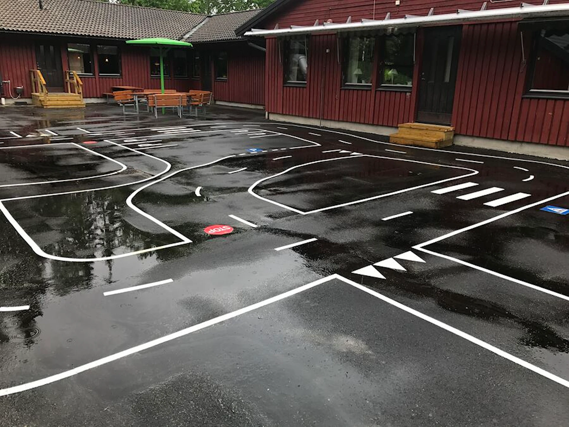 - Termoplast : Termoplast kræver ingen vedligehold. Overfladen er slidstærk og vejrbestandig, men levetiden forlænges ved jævnlig rengøring med vand, især hvis området er meget snavset eller tilgroet.