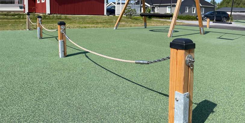 I vores sortiment tilbyder vi hegn til legepladser i både lærketræ og robinia, hvilket gør det muligt at bygge et hegn, som matcher legepladsens legeredskaber. Et alternativ til hegn på legepladser er sikkerhedsafgrænsning med stolper og reb.