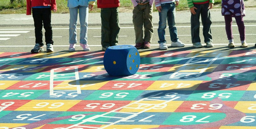 Så finder du her sjove asfaltkridt i forskellige farver, der lader børnene være kreative. Du finder du også spillebrikker, der er specielt designet til udendørs leg.