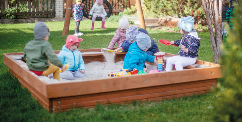 Enhver legeplads til små børn bør have en sandkasse. Her er der plads til timevis af leg med sand – så find skovle og spande frem og gå i gang med at bygge.
