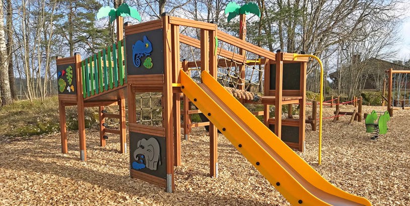 Legeredskaberne passer lige så godt på legepladsen i boligforeningen som på en større legeplads i en bypark – og gør det nemt at drømme sig væk til fantastiske eventyr i junglens smukke omgivelser.
