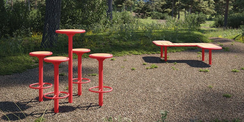Produkterne kan kombineres på kryds og tværs: Placer nogle bænke i forlængelse af hinanden – og du har skabt en pæn og praktisk grænse i en park. Eller lav et loungeområde til hvile og restitution efter løbeturen.