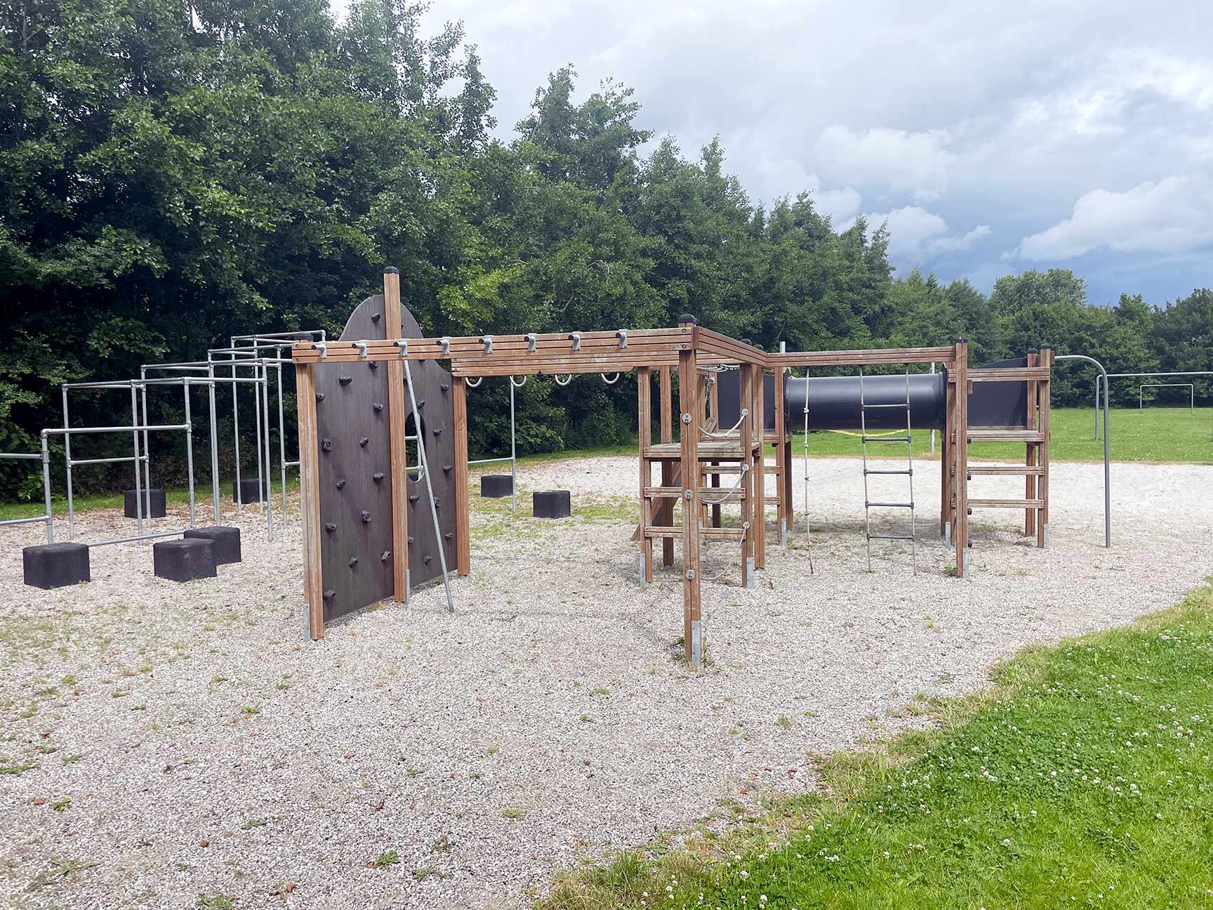 Skulle man få lyst til at teste både sin fysiske og mentale styrke på udfordrende forhindringer, kan man slå sig løs på aktivitetsområdets parkourfaciliteter, der rummer både et lavt rail, vægge, gummiblokke og ikke mindst vores store Monkey Rail.