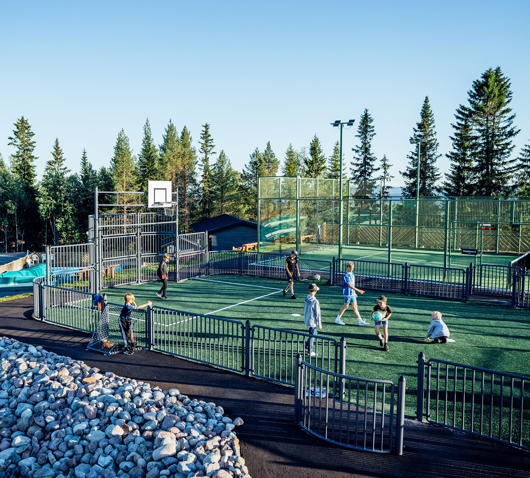 Vi arbejdede tæt sammen med Idre Fjäll for at opfylde drømmen om et aktivitetsområde med plads til både træning og leg for mennesker med forskellige forudsætninger. Det nye område stod klar lige i tide til sommersæsonen 2022. Her er der nu bl.a. et unikt OCR-forløb udviklet i samarbejde med Element Fitness, to padelbaner, boulder rocks, outdoor fitness, legeplads, svømmefaciliteter og en multiarena.