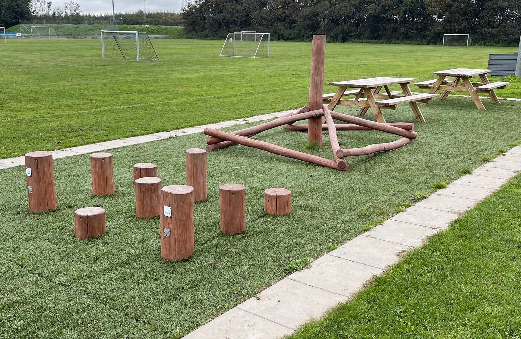 Det har man fundet en løsning på i Ribe Boldklub, hvor vi har leveret en fodboldlegeplads med plads til både boldspil, balanceudfordringer og opholdspladser.
