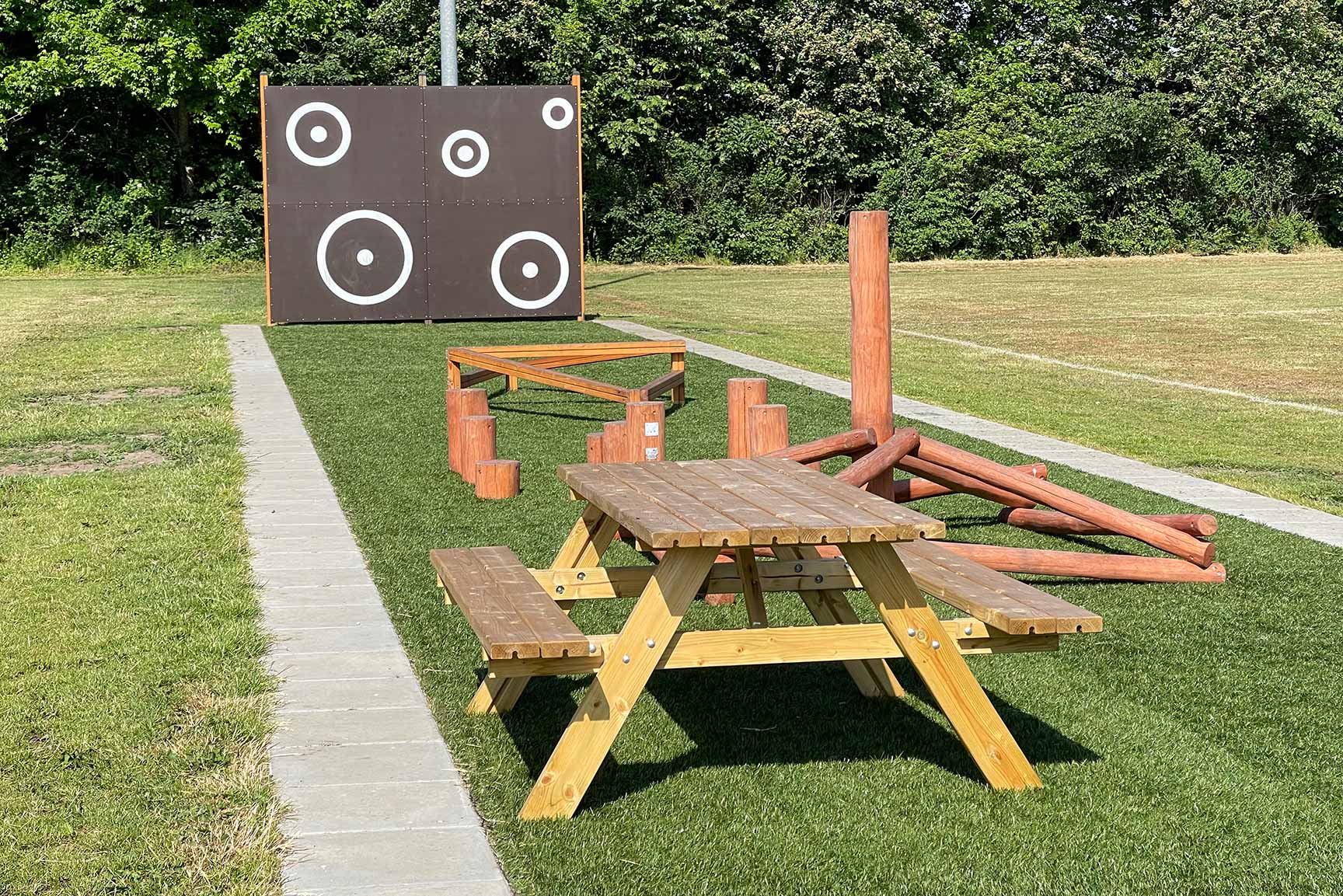 Med flere bordbænkesæt kan fodboldbørnenes forældre nu slå sig ned med en kop kaffe under kampen. Her kan de både holde øje med barnet på banen og evt. mindre søskende på fodboldlegepladsen.