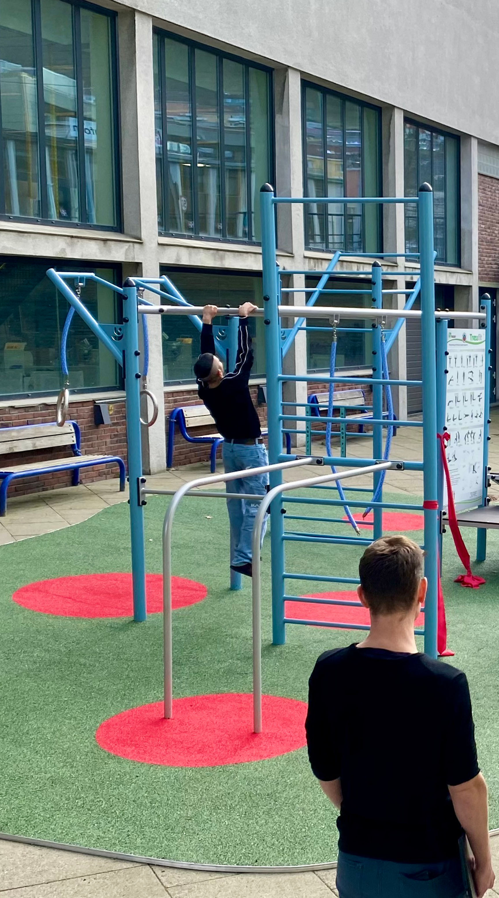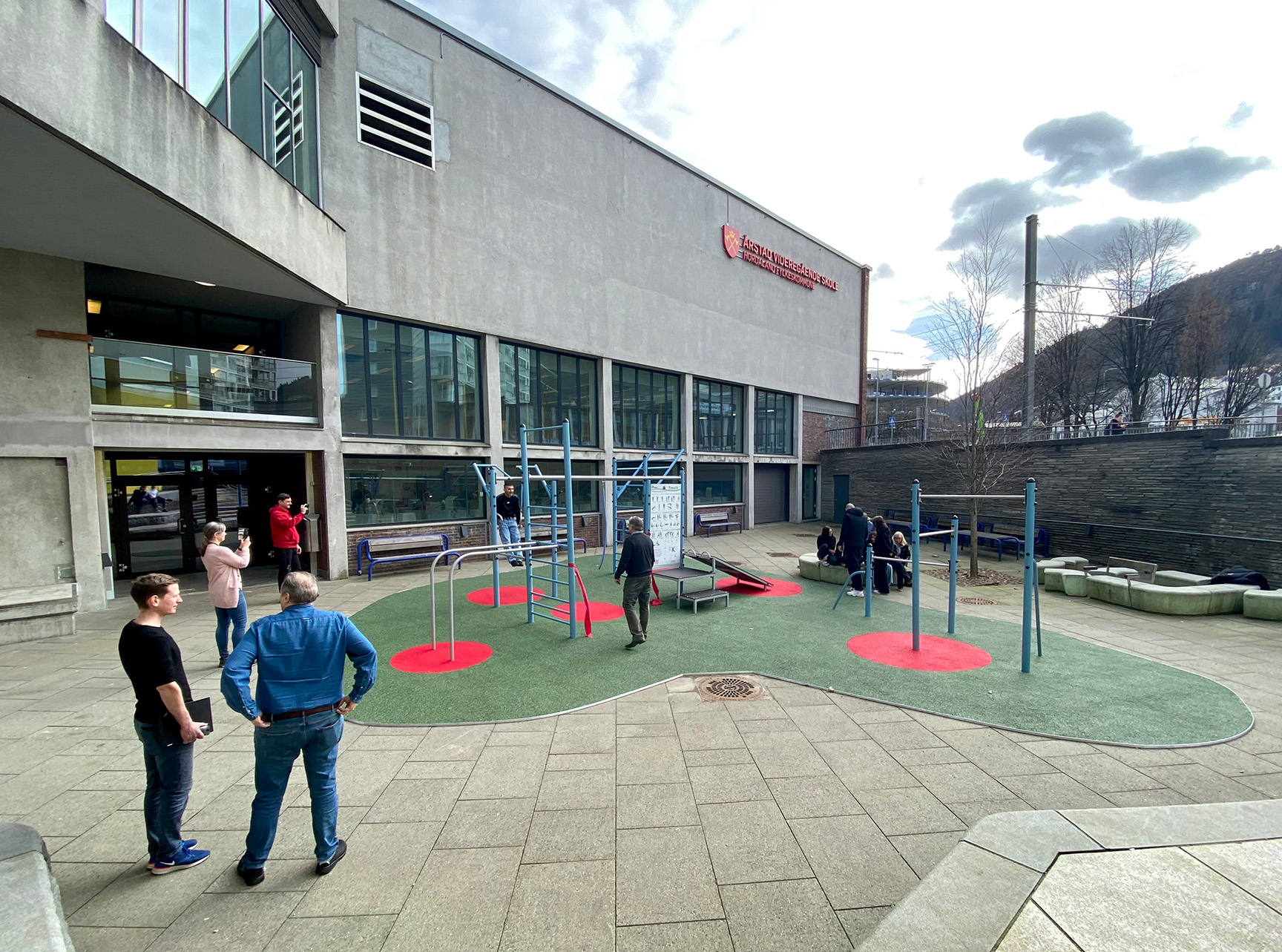Lange dage på skolebænken kan gøre eleverne tunge i hovedet – men udendørs motion er med til at få hjernen i gang og klar til ny læring. På Årstad Videregående Skole får eleverne en værdifuld aktiv pause med træning på TRESSfit-stativet og boldspil på vores populære Goliath basketballstativ.