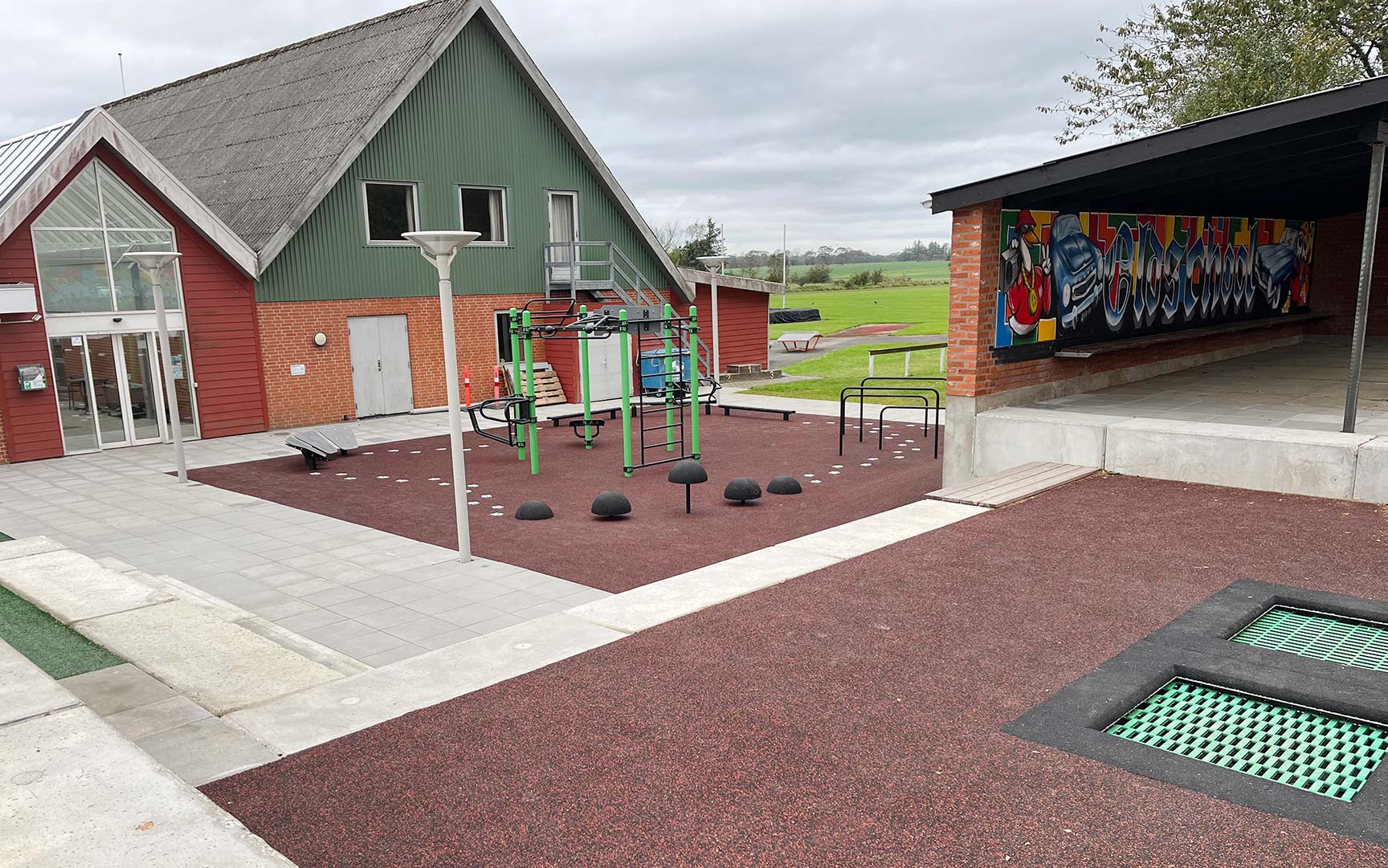 Det nye aktivitetsområde tilgodeser flere aldersgrupper og interessere og byder på et udendørs træningsmiljø, et område til 'jorden er giftig', trampoliner, et boldspilsområde og gode opholdspladser.