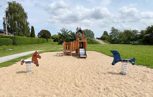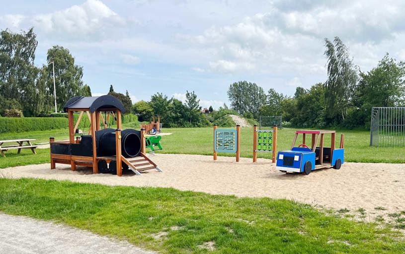 I områder er der noget at lave for både børn, unge og voksne. Der er gynger i flere højder, balancebaner, kolbøttestænger, en svævebane og legehuse, der sætter gang i fantasien og rollelegen. De mindste kan gå på opdagelse i det sjove legestativ, tage en køretur i lokomotivet eller kravle op i pick-up-trucken. Og klassikere som kryds og bolle eller vendespil giver rig mulighed for leg og hygge på tværs af alder.