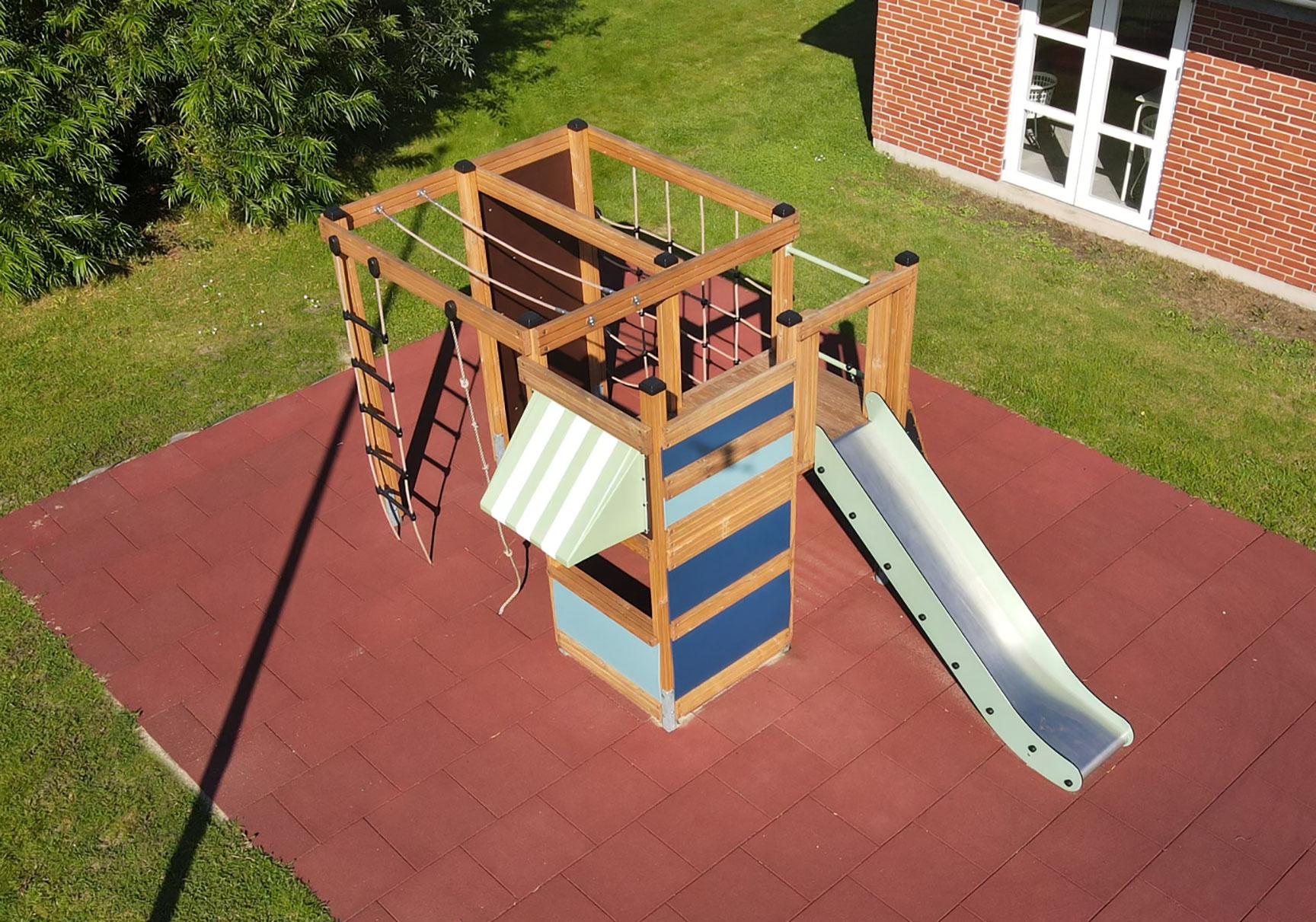 Boligforeningen Lejerbo i Vildbjerg ønskede at anvende et ubrugt græsareal til en mindre legeplads, som kan benyttes af børnene i området. Valget faldt på klatrestativet Urskoven fra vores populære Pioneer-serie.