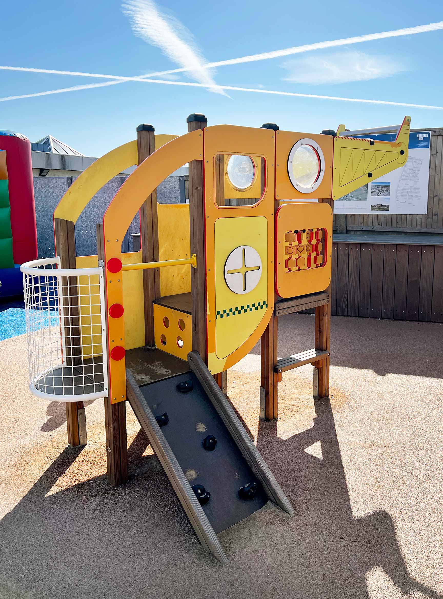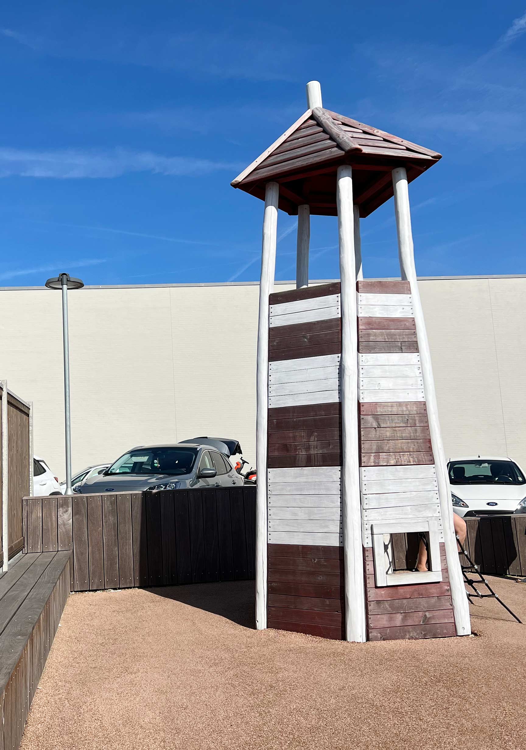 Legepladsen blev opført i forbindelse med byggeriet af en splinterny Meny-butik i Søndervig. Her kan større børn lege, mens forældrene løber et par hurtige ærinder.