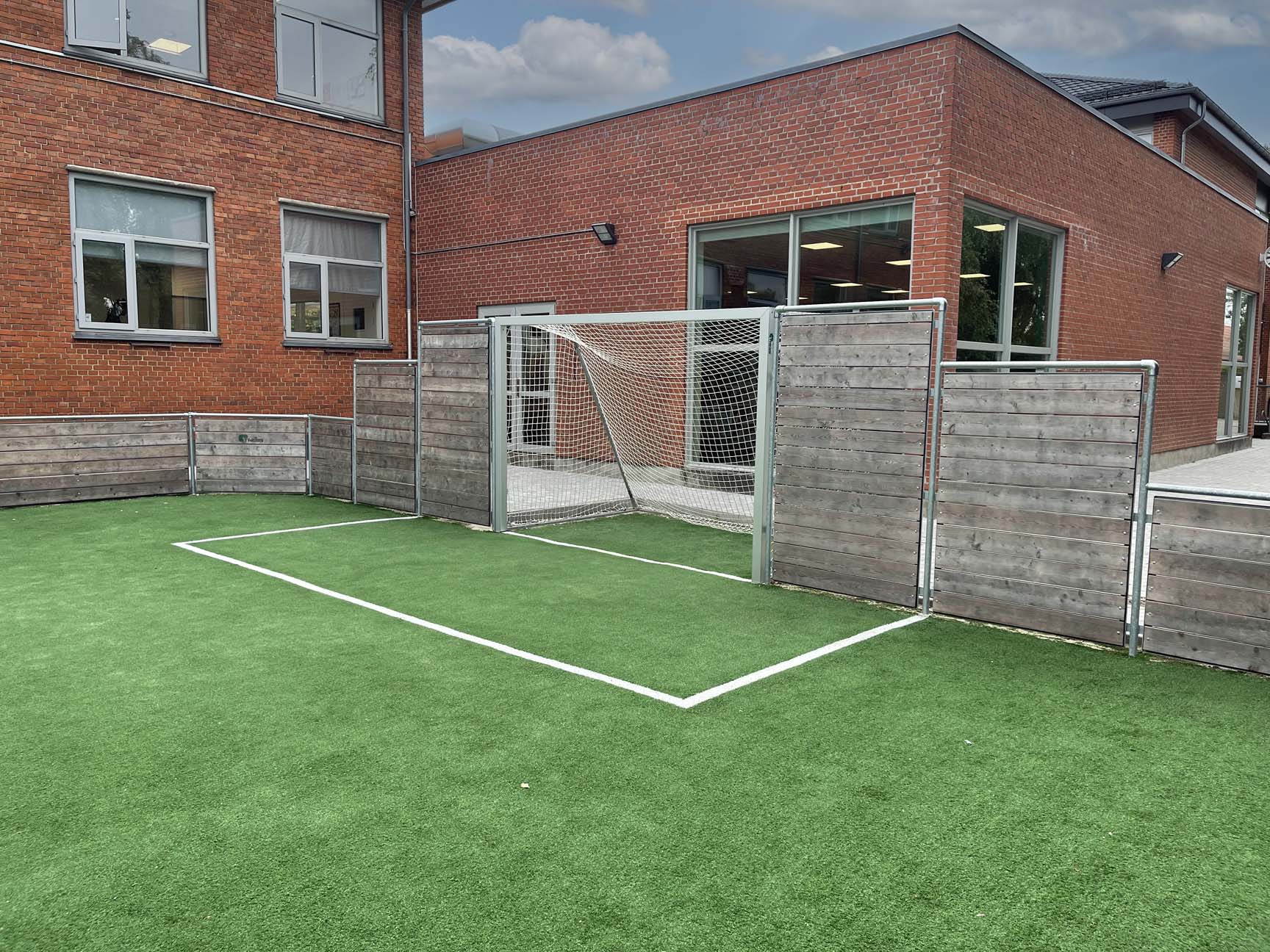 Multibanen med kunstgræs giver mulighed for masser af boldspil – fx fodbold, håndbold, basketball og volleyball – hele året rundt i alt slags vejr. Multibanen holder sig flot i mange år og kræver kun minimal vedligeholdelse med sand én gang årligt.
