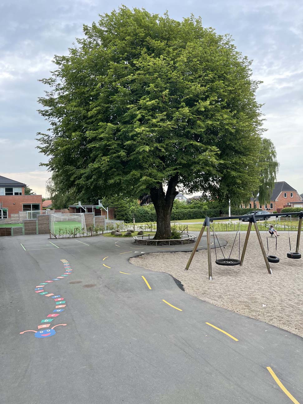 Egtved Skole ønskede at omdanne et ubrugt udendørsareal til en multifunktionel del af skolegården, hvor skolens mange elever kan være aktive sammen eller hver for sig. Sammen med kunden fandt vi frem til en løsning med både multibane til diverse boldsport, hyggelige gynger samt asfaltopstregninger til leg og undervisning.