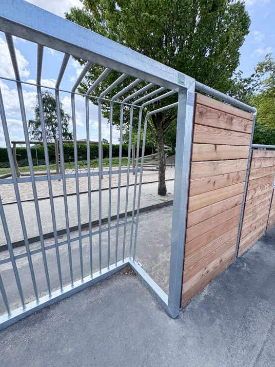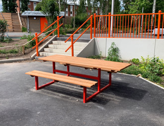 Valget af lærketræ og galvaniseret stål sikrer minimal vedligeholdelse og høj slidstyrke i mange år frem.