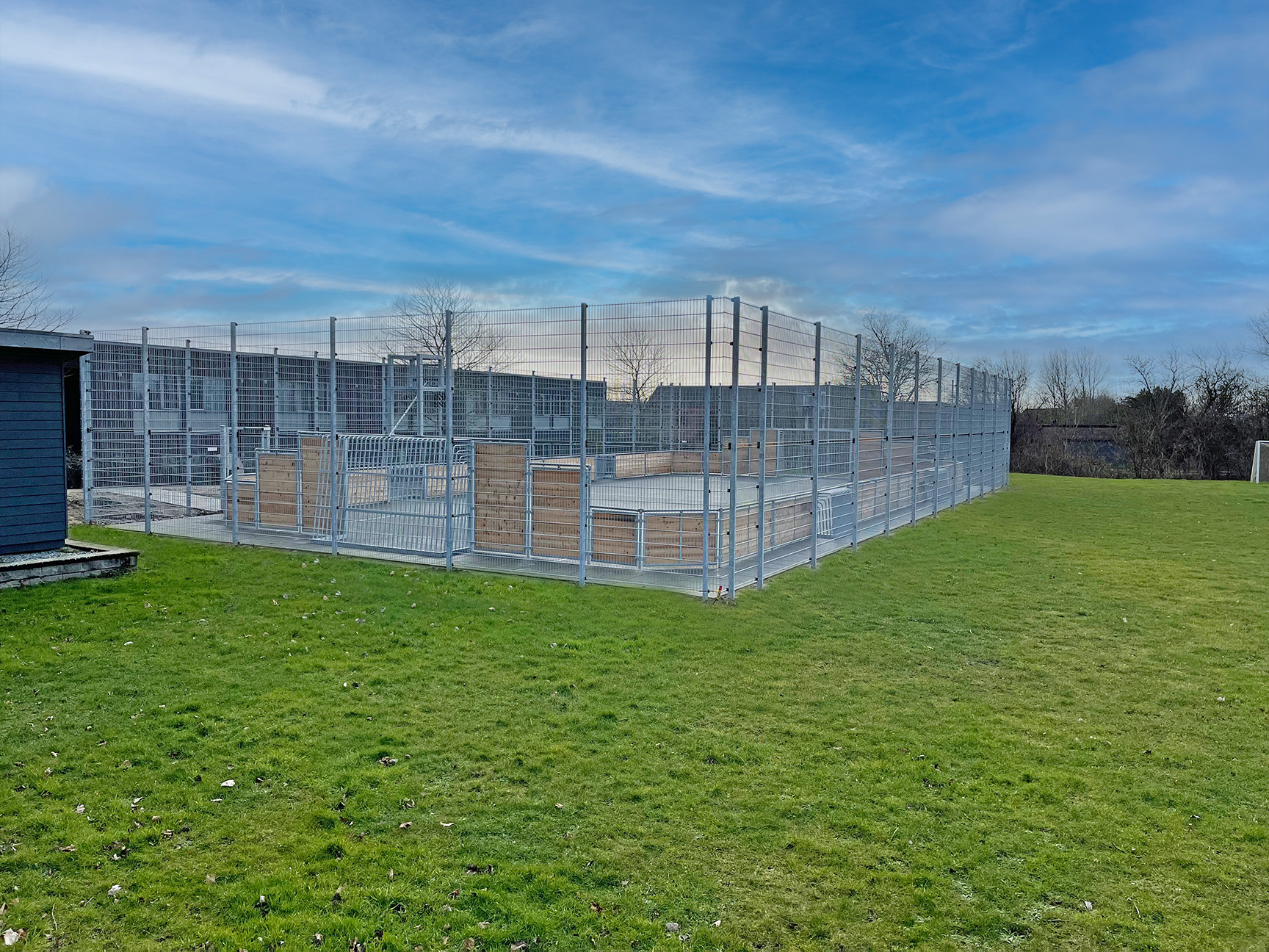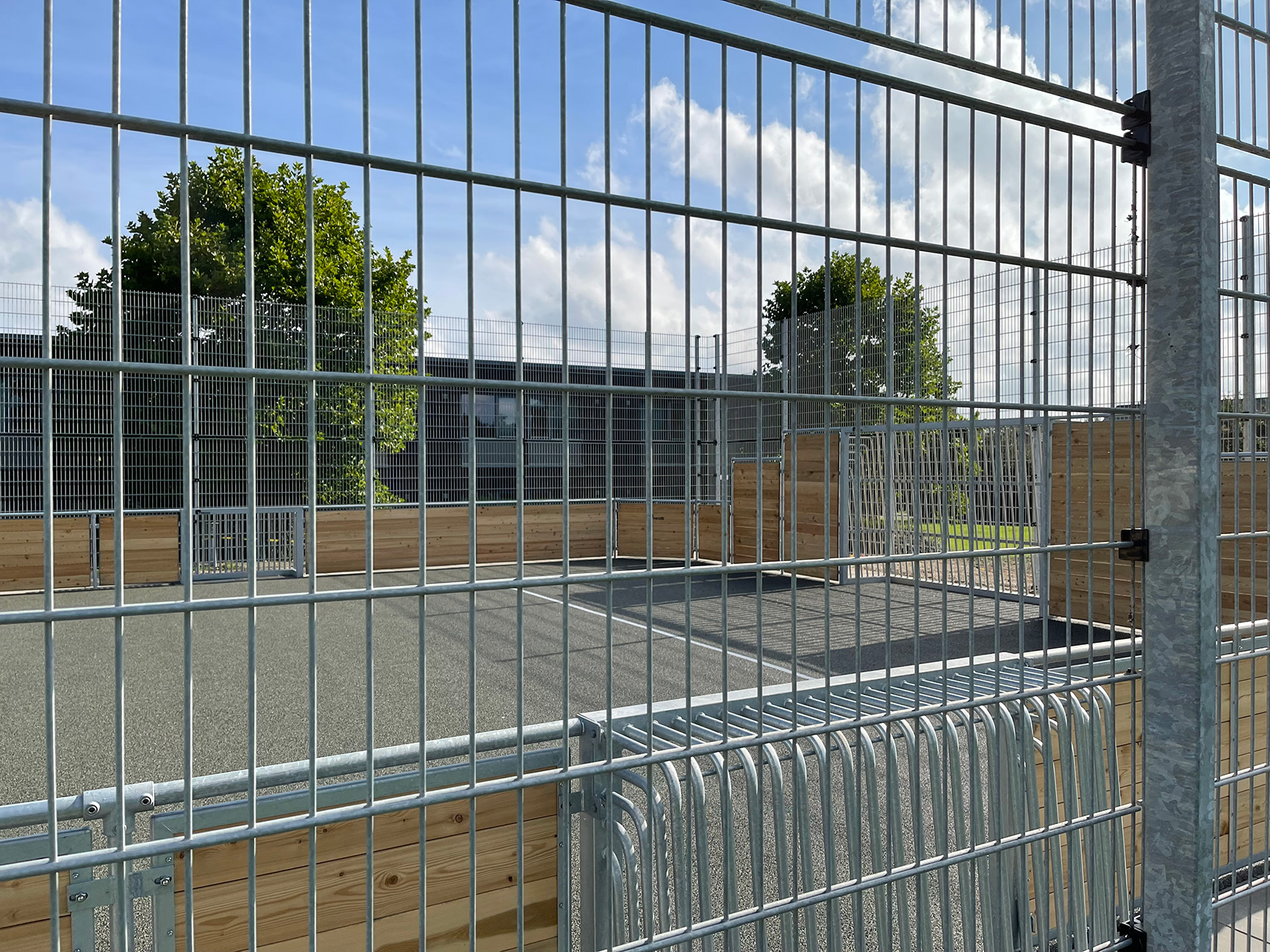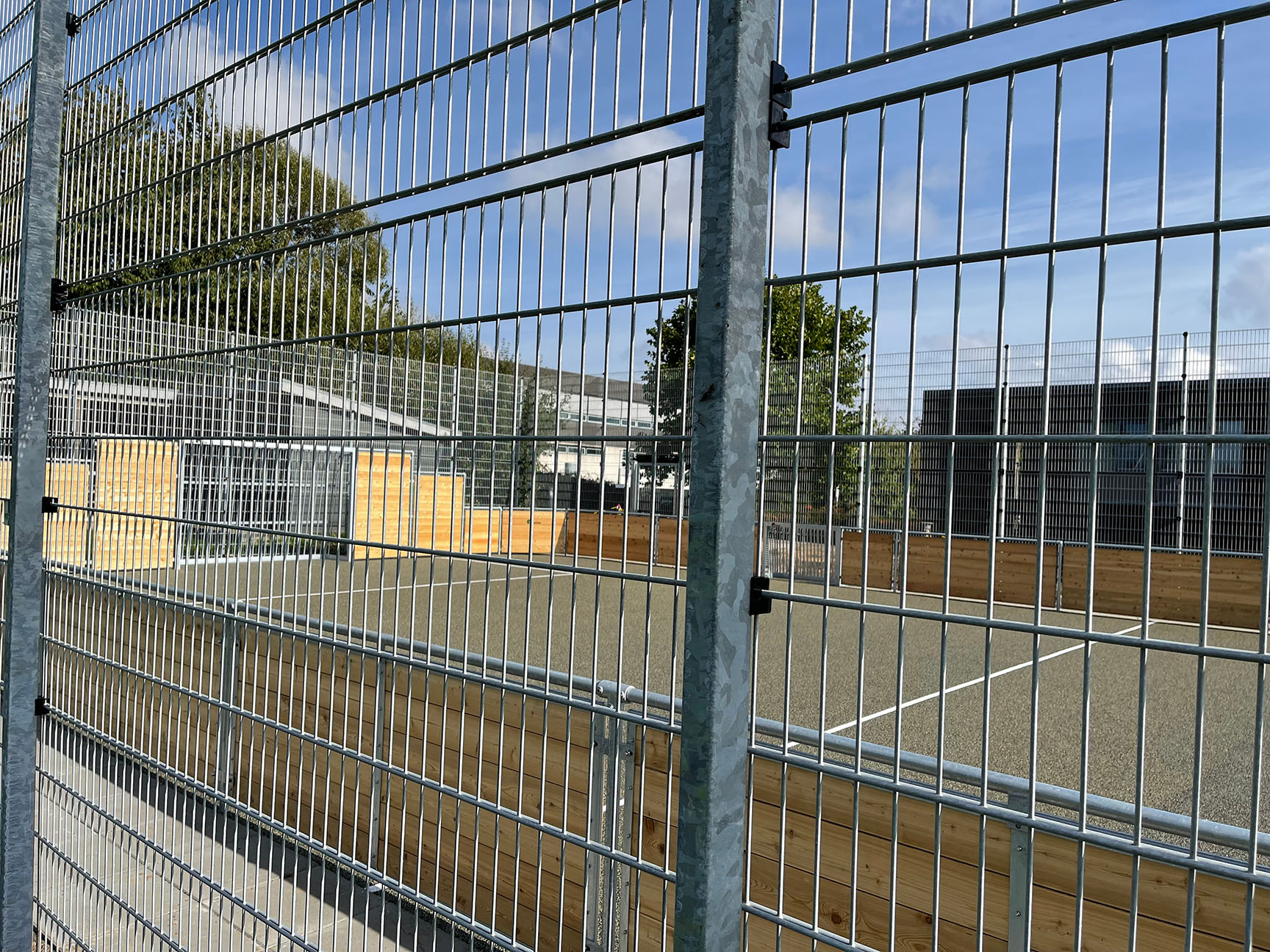 Multibanen i lærk er en æstestisk flot bane i topkvalitet, som matcher skolens arkitekttegnede bygninger og omgivelserne generelt. Banen kan låses af og kræver desuden kun et minimum af vedligeholdelse – og vil stå flot mange år frem.
