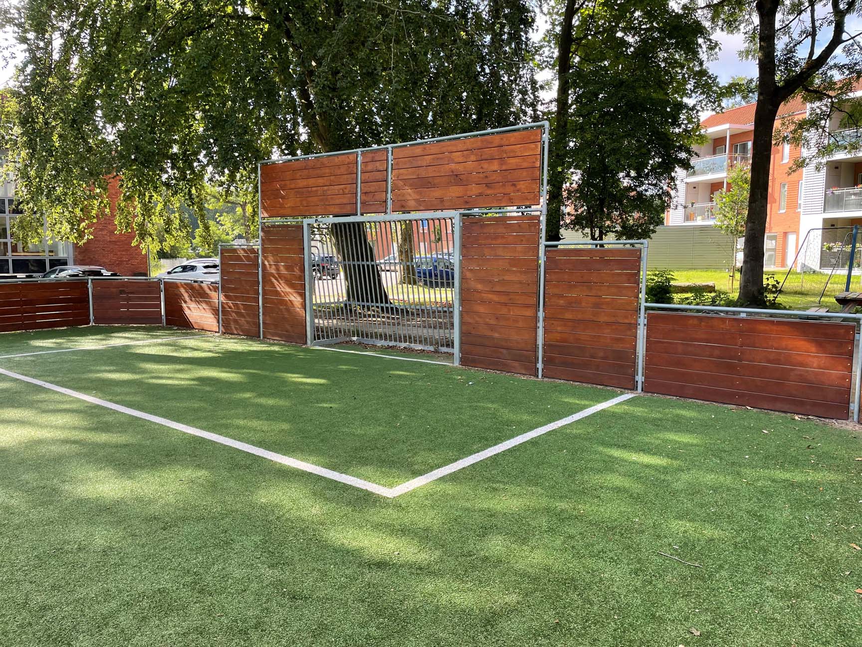 Den nye multibane indbyder eleverne til at hygge sig med masser af boldspil både i frikvarteret og efter skoletid. Banen har et stort mål i hver ende samt fire små mål – to på hver langside – som gør, at banen kan deles op til flere aktiviteter på samme tid.