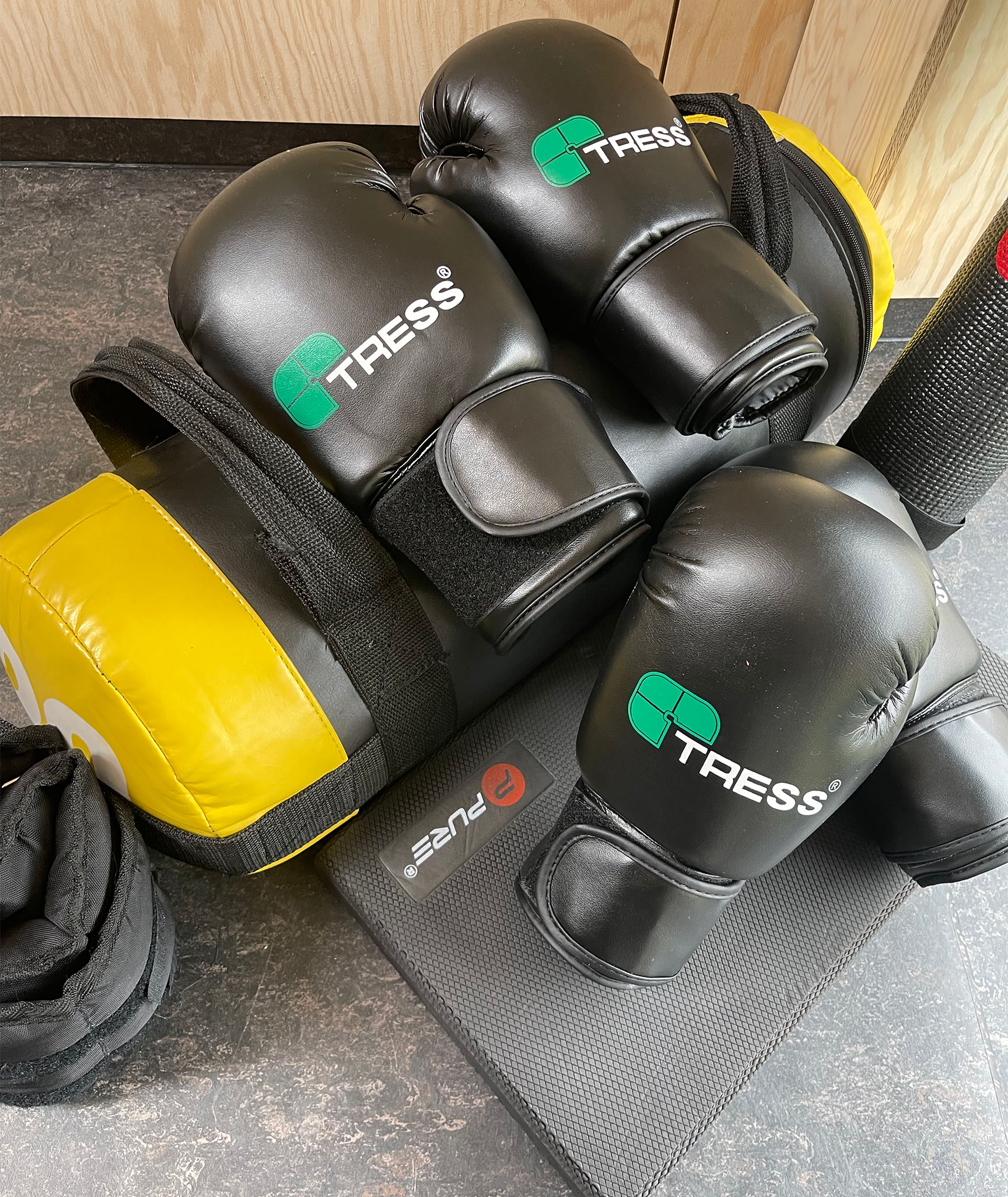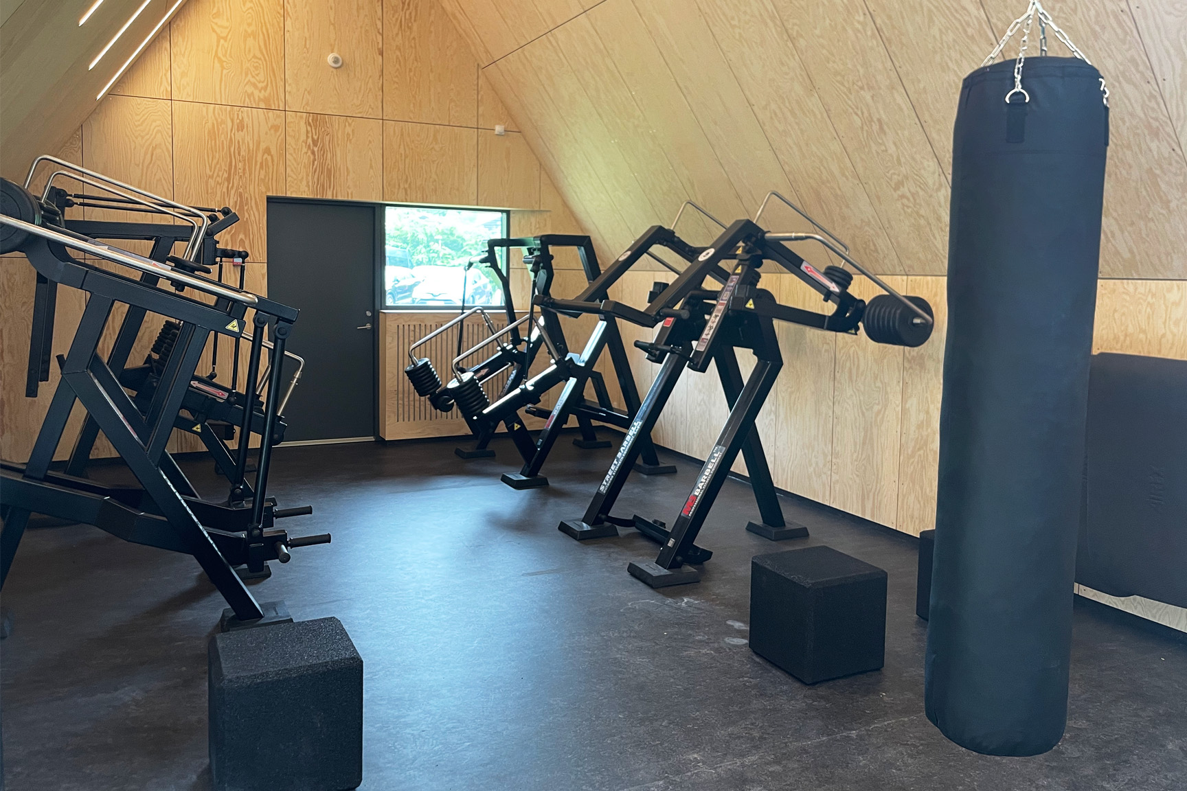 Træningsrummet er desuden blevet udstyret med kvalitetstræningsmåtter fra Airex, udstyr til motionsboksning og multifunktionelle gummiblokke, der ligesom maskinerne er boltet fast.