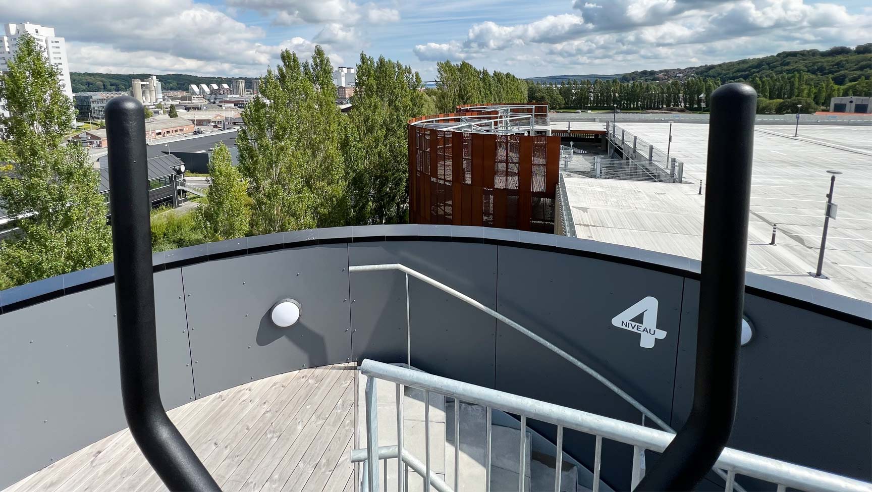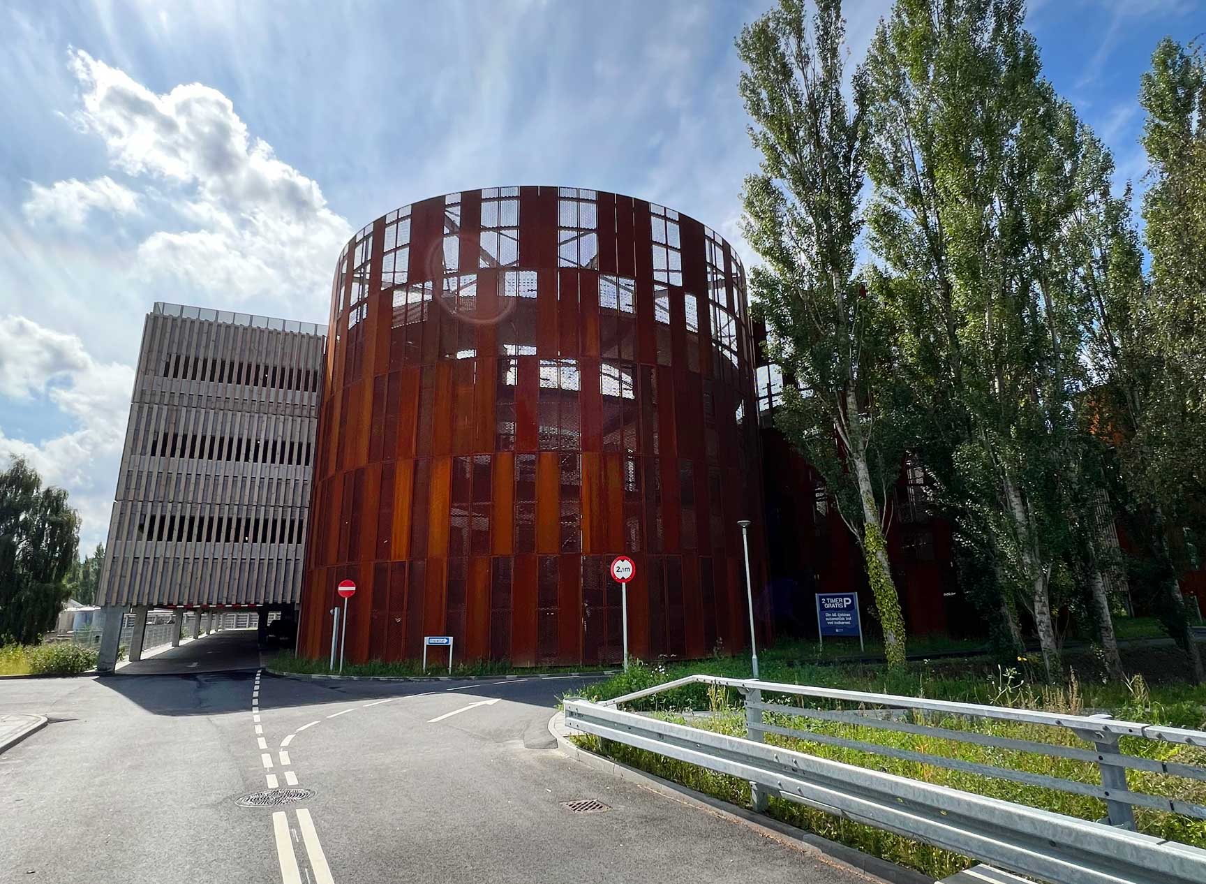 Crosstraineren kræver minimal vedligeholdelse og er leveret i en lakeret rødlig farve, der matcher udtrykket på det nybyggede p-hus.