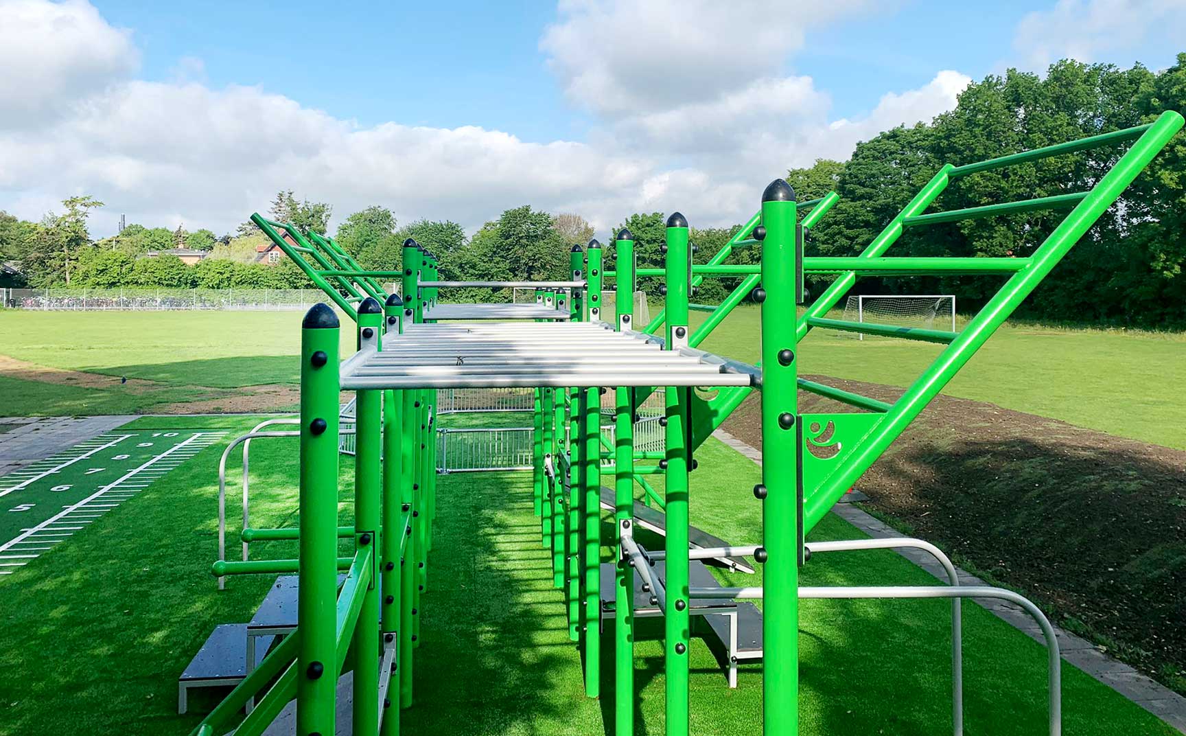 Det bliver mere og mere populært at træne udendørs – og det nye aktivitetsområde bag skolen kan både bruges til idræt og leg.