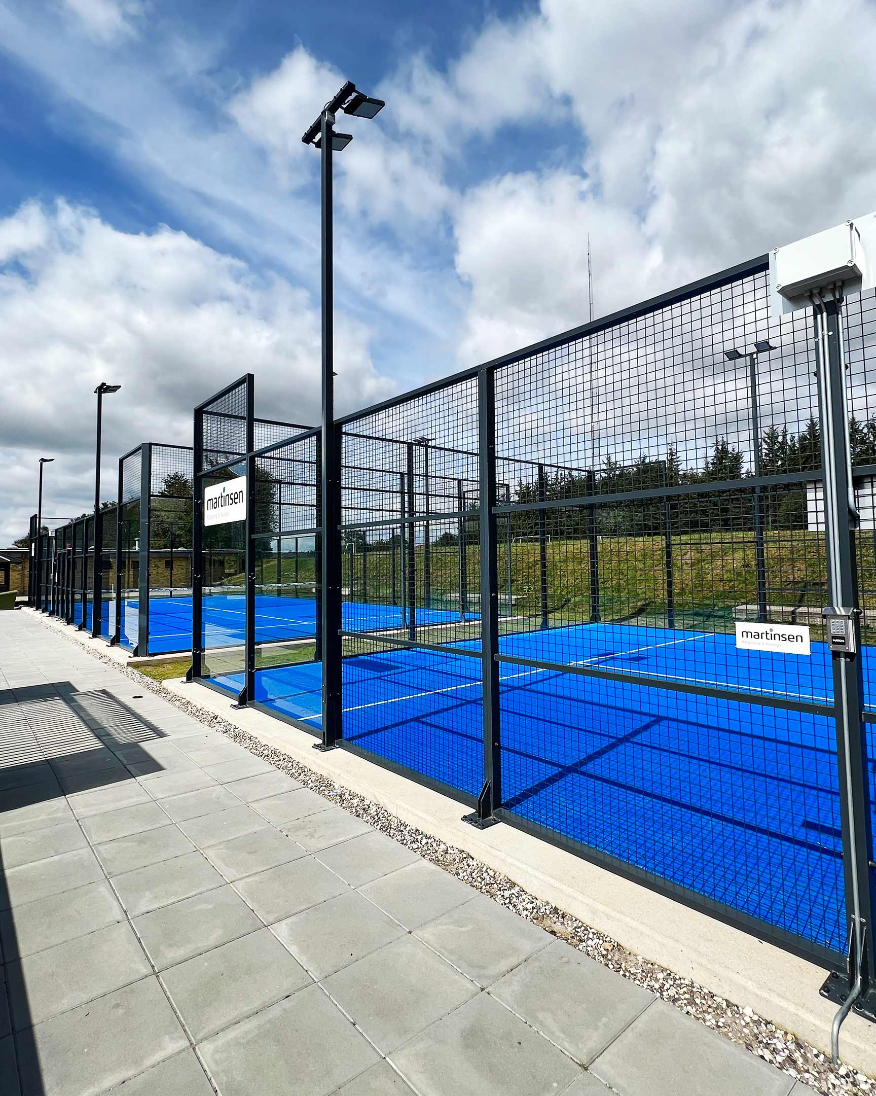De tre nye padelbaner er anlagt rundt om den eksisterende multibane beliggende mellem Gudenåcenteret og Tørring Skole. Multibanen bruges flittigt af skolens elever – og håbet er, at de nye padelbaner også vil få de unges interesse.