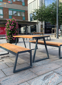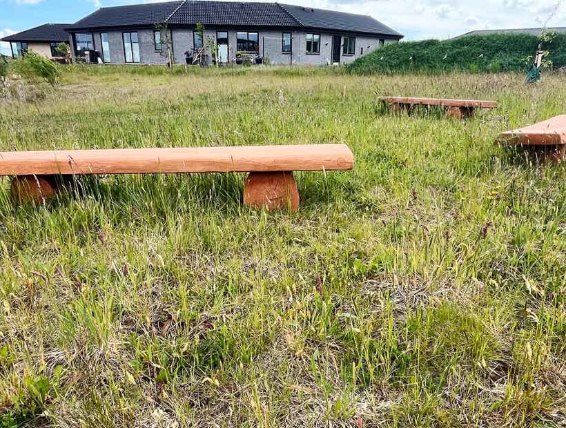 Det lille søområde midt i bebyggelsen har fået nyt liv med tre enkle bænke i robinia – og det har gjort en større forskel, end man måske lige skulle tro. Nu er her plads til både ro og nærvær. Man kan slå sig ned med en kop kaffe, nyde udsigten eller falde i snak med en nabo. Bænkene falder naturligt ind i det grønne område og passer perfekt ind i den rolige stemning uden at tage opmærksomhed fra landskabet omkring bænkene.