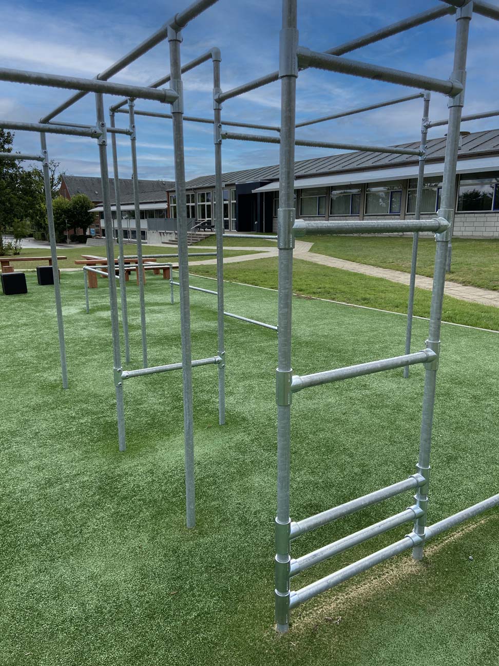Parkourområdet inspirerer til bevægelse i løbet af skoledagen og understøtter derigennem børnenes trivsel og læring.