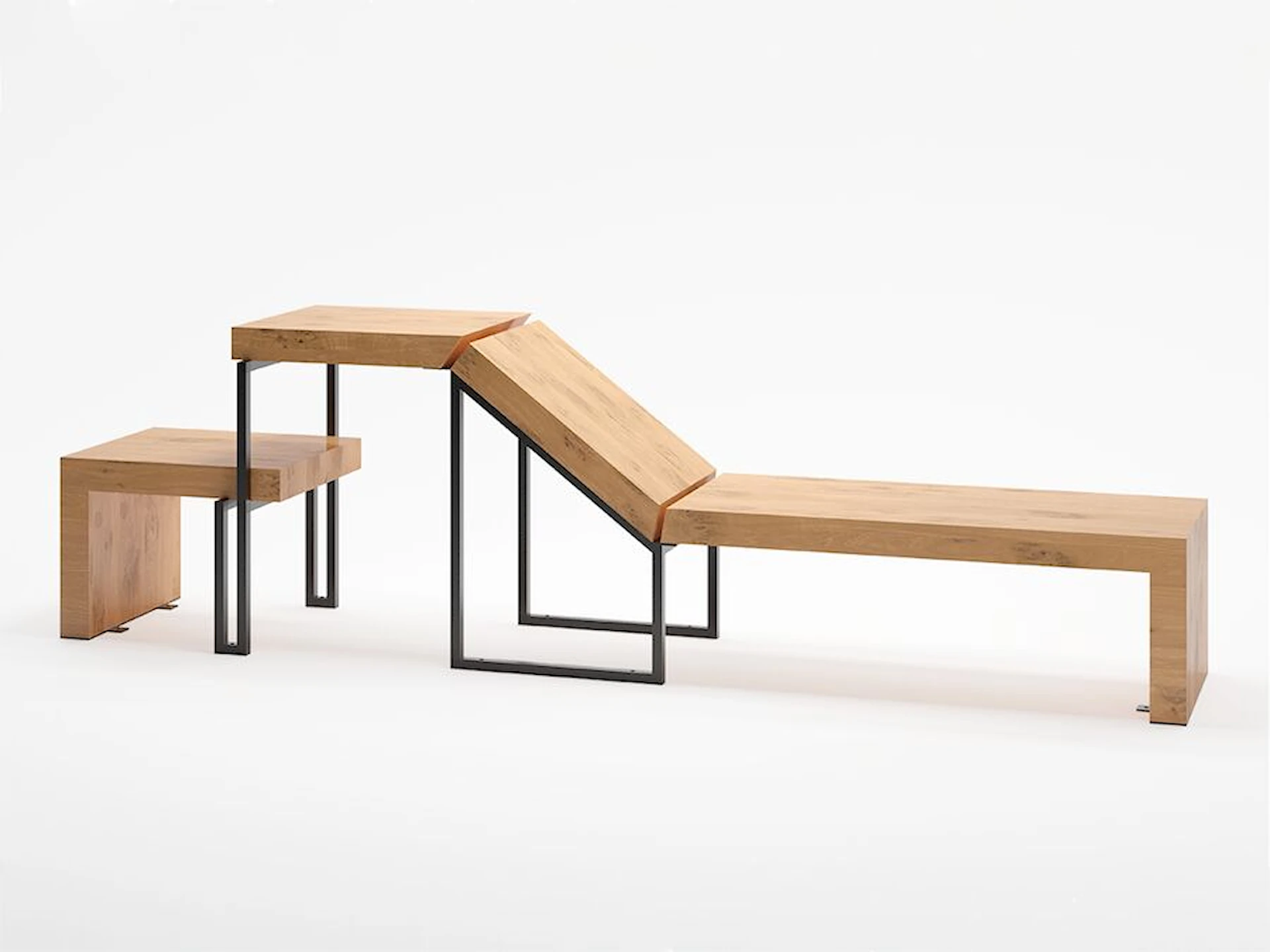 SCULPTOR Loungebænk med bord og skammel