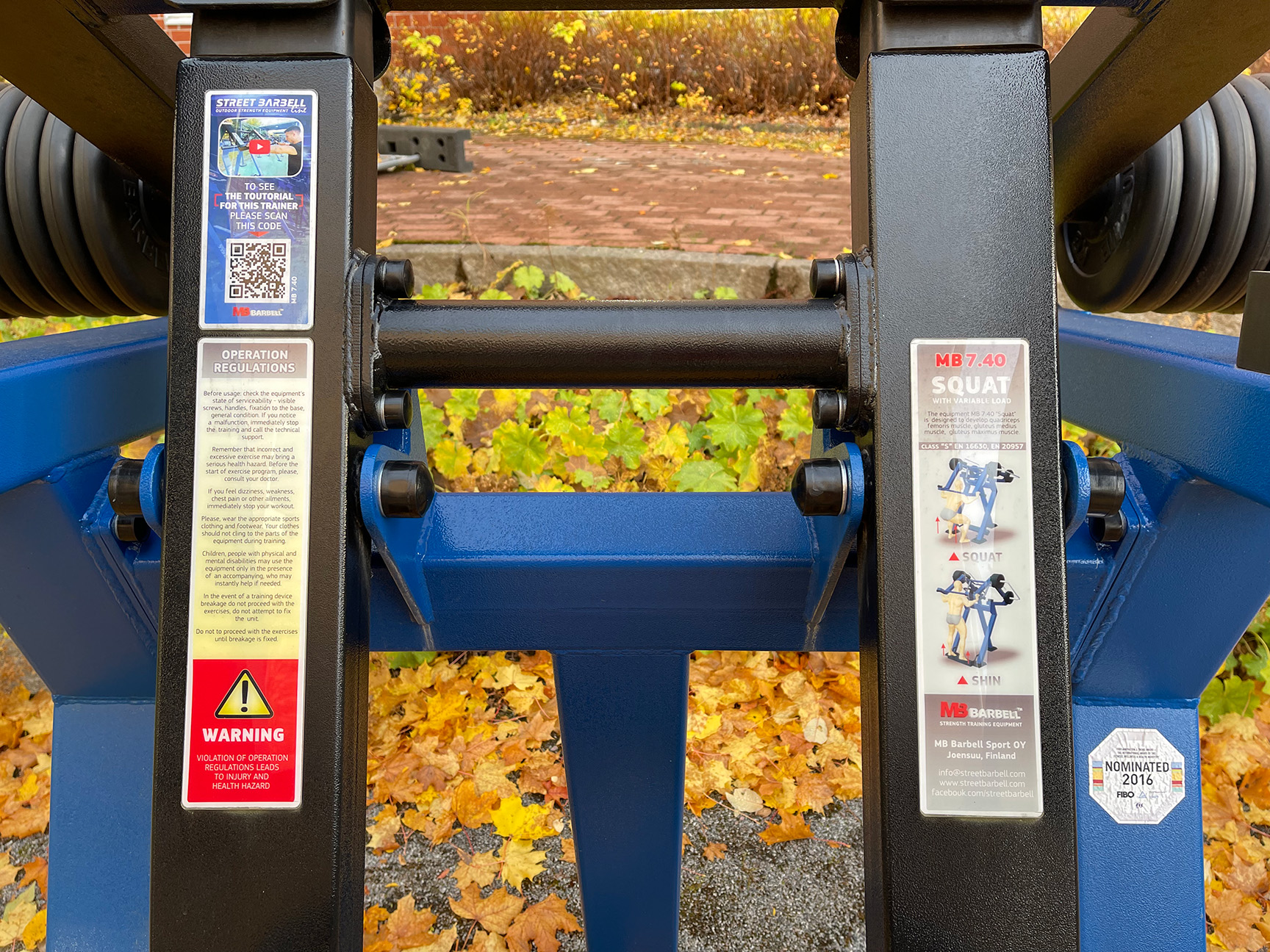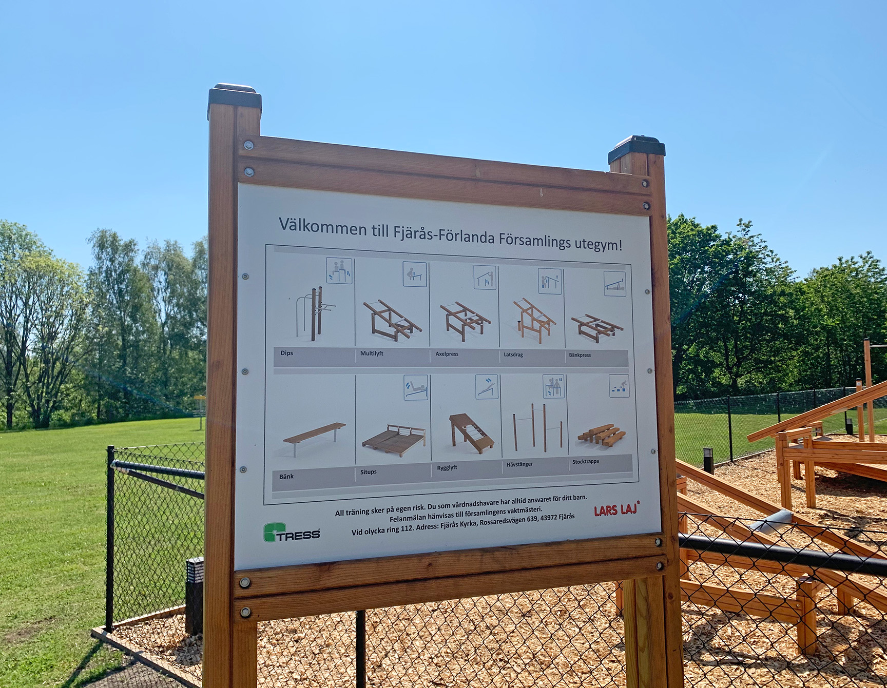 Permanent installeret trænings- og fitnessudstyr (dækket af EN 16630-standarden) beregnet til unge og voksne må ikke placeres i umiddelbar nærhed af børns legeredskaber (dækket af EN 1176-standarden). Hvis træningsudstyr installeres i nærheden af en legeplads, skal disse adskilles fra hinanden med passende afstand, naturlige forhindringer, hegn, skiltning eller en kombination af disse tiltag. Standarden EN 16630 er udviklet som en regulatorisk ramme for at sikre træningsudstyr til offentlige miljøer.